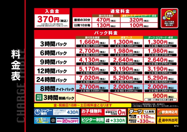 遊技場朝練パックは対象外となります
